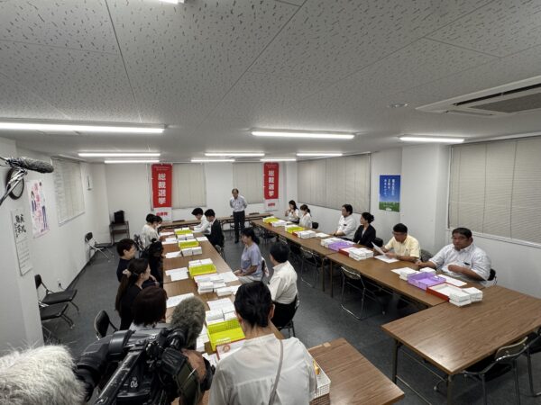 9月22日告示、10月4日開票の日程で、「総裁選挙」が実施されるに当たり、各選挙区支部の皆様にご協力いただき、宮城県内の党員投票選挙人への投票用紙の発送準備作業を行いました。本日準備した投票用紙は、22日の総裁選挙立候補受付により選挙戦が確定し次第、ただちに選挙人へ郵送いたします。なお、宮城県の党員投票の開票作業は、10月4日の午前中に党県連事務所にて実施することになっております。