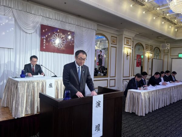 2月22日(日)仙台市内において、支部長・幹事長会議を開催しました。先日の衆議院議員選挙、宮城県内小選挙区・比例代表で当選した小野寺五典県連会長はじめ党所属国会議員より挨拶。 衆議院議員選挙の結果について、また4月11日(土)開催の令和8年第71回県連定時大会について、高橋伸二県連幹事長より報告がありました。
