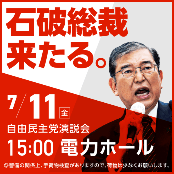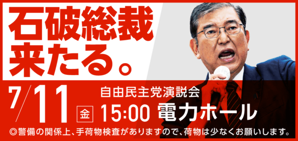 『石破茂 自由民主党総裁来たる。 自由民主党演説会‐ 7/11(金) 電力ホール -』