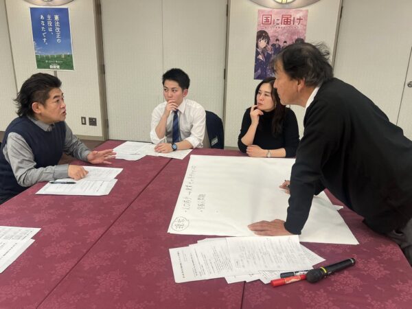 その後未来塾生との質疑応答。振り返りのワークショップ、グループディスカッションでは塾生同士活発な議論が交わされ、各グループごとに意見発表を行いました。